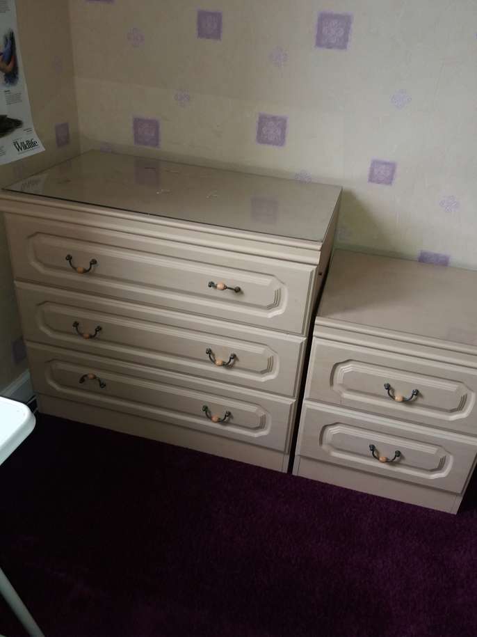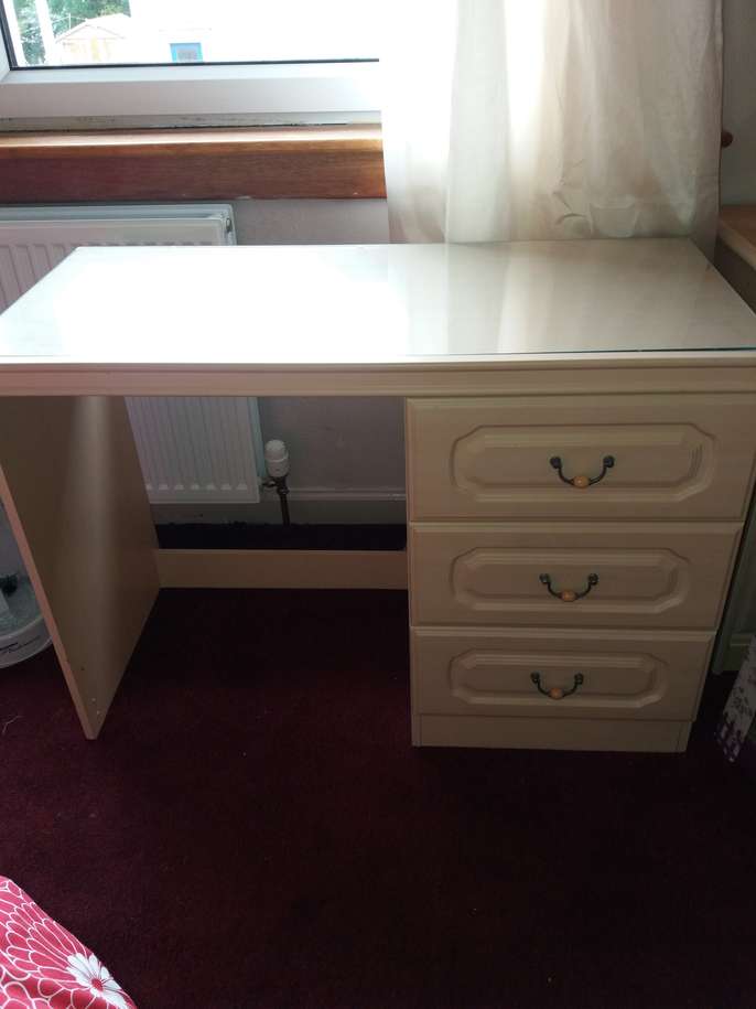 Dressing table and two sets of drawers as in the photos The top of them have glass on them which is all intact. Can be used without the glass tops. Originally bought from Harveys Please say when requesting when you are able to pick up as I will only reply to those emails. Thank you