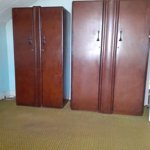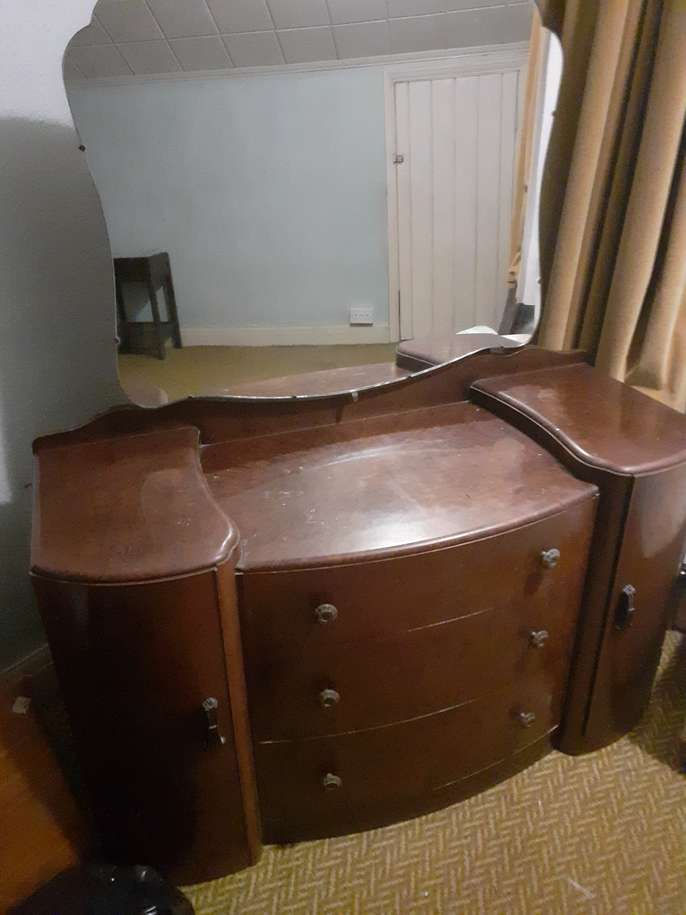 Consists of a double wardrobe, mans wordrobe and a dresser. Quite old but in good condition, just needs a polish. Its very heavy as made of wood, (we think maple) and would need to be dismantled to get downstairs. Would need to be collected from Sidcup.