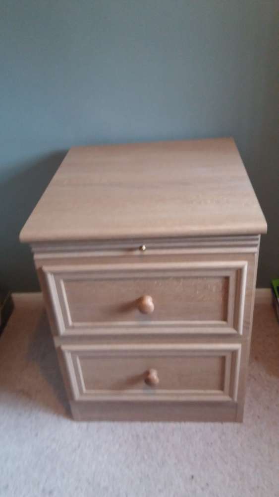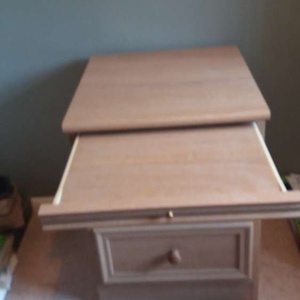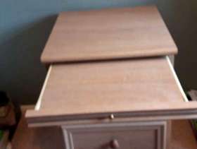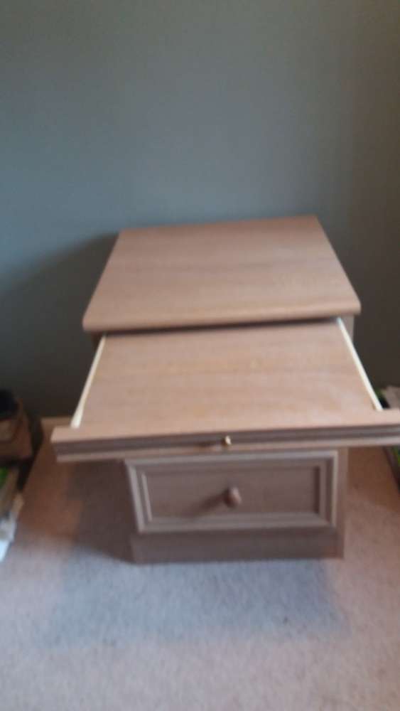 Excellent quality bedside table with pull out tray plus 2 drawers. As new. Size h 61cms x w 46 cms x d 50cms