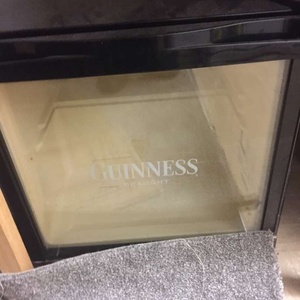 Hi Ive relisted it again as It wont let me put a photo in Its about 2 foot high and wide with a Guinness logo on the front glass door It works perfectly
