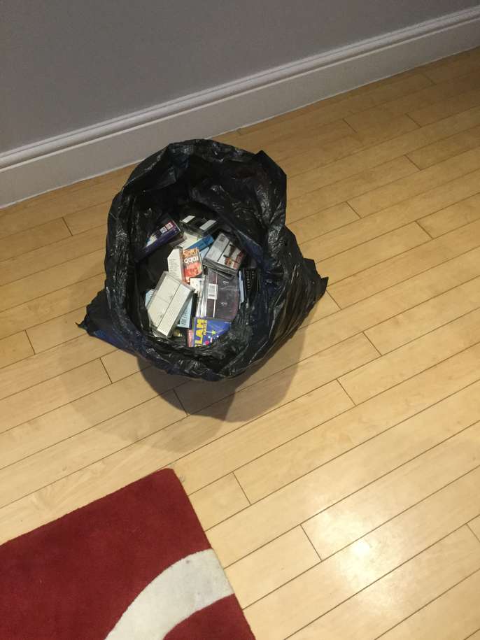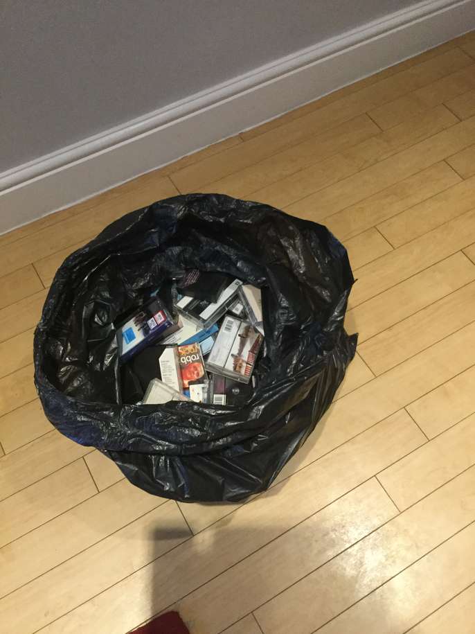 Bin bag full of music cassette tapes