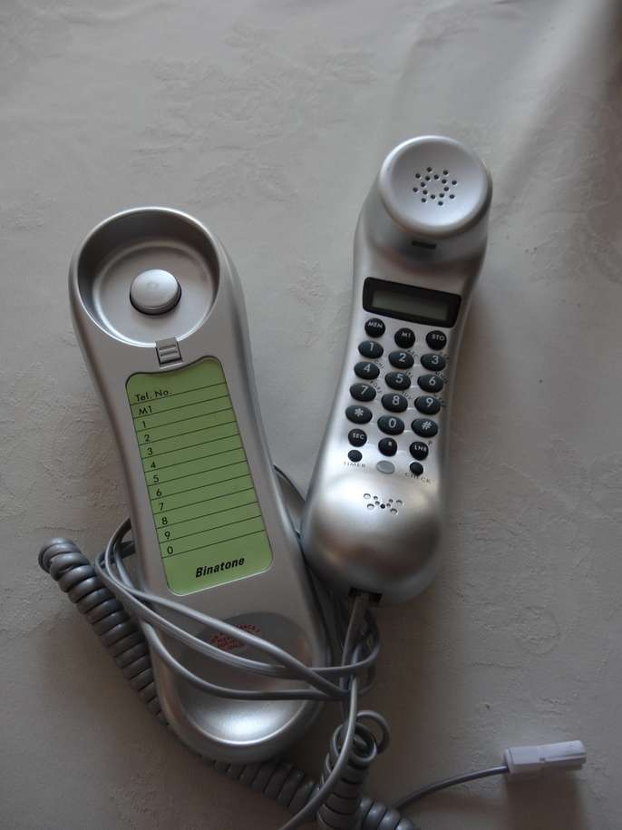For offer we have a Binatone Trend 3 LCD telephone in good working order. This can be hung on the wall. If interested, please give a contact telephone number and a time when you are able to collect