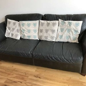 Black leather sofa(cushions not included) in excellent conditiom- seater 3-super comfy Italian leather - very good quality