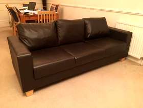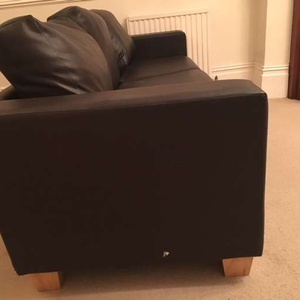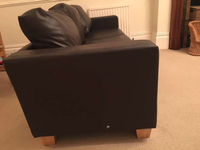 Black 3-seater sofa to give away ASAP. Made out of faux leather. Dimensions: 77cm x 197 cm. Depth: 50cm x 166 cm. A bit of paint on the side and on one of the cushions, but quite small and show be easy to remove. You will need to pick up from East Dulwich.