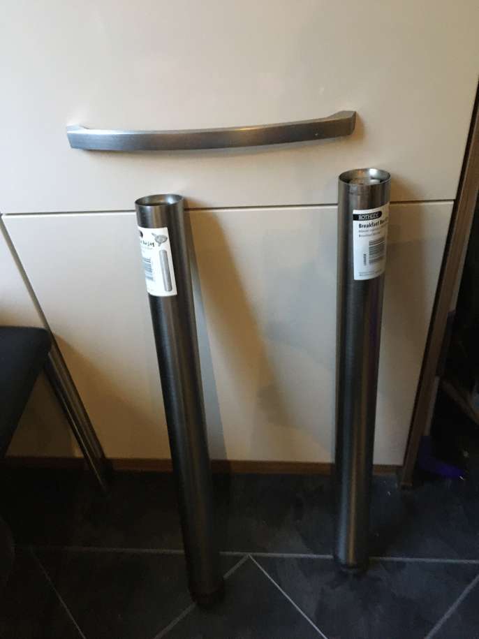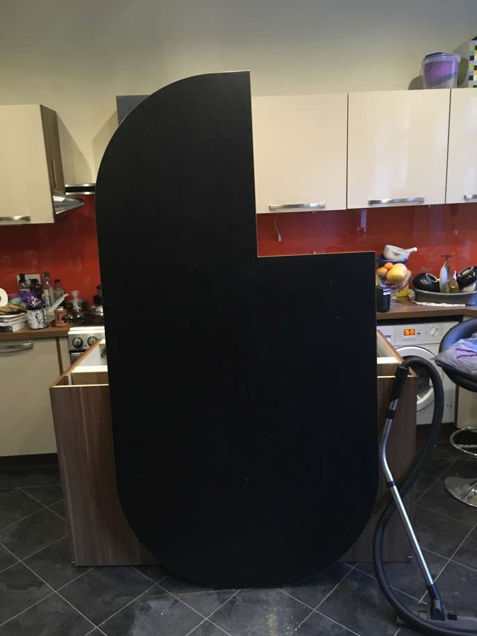 Was part of a fitted kitchen and was attached to a centre island. It’s a large (6’6”x3’6”) table but as a result of the fitting has just less than a quarter missing. Would make a good project for a breakfast bar or smaller table etc. Two legs included (again for above reasons).