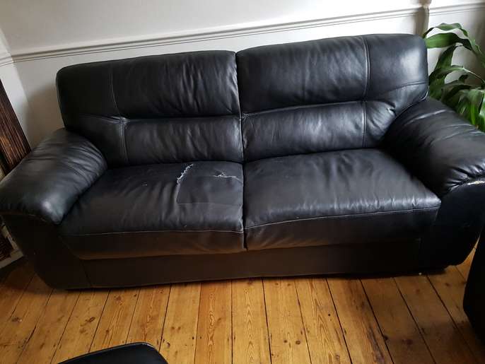 Black 2 seater leather sofa Black 1 seater leather sofa Items in front garden please take!