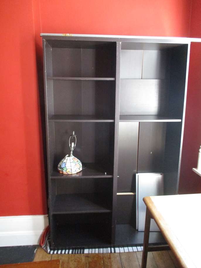 In good condition but need to add a couple of small screw supports for all shelves to have support. Think it can be dismantled for ease of transport, pick up only as is free