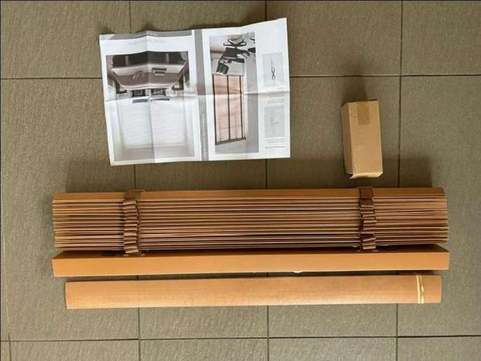 Faux wood venetian blind (brand new in box) 50mm slats, 850 wide x 1200mm drop 50mm Sunwood Venetian blinds Colour Honey Width 850mm Drop 1200mm