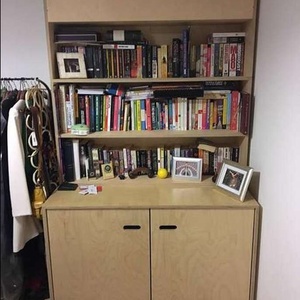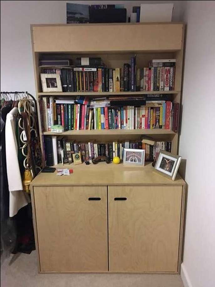 We have X 2 good quality book shelves (only one is pictured) and a cupboard to give away. One of the book shelves sits on top of the cupboard in the picture but they are separate items which are not linked.