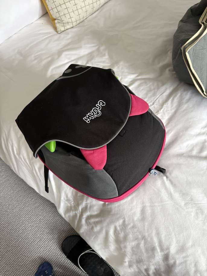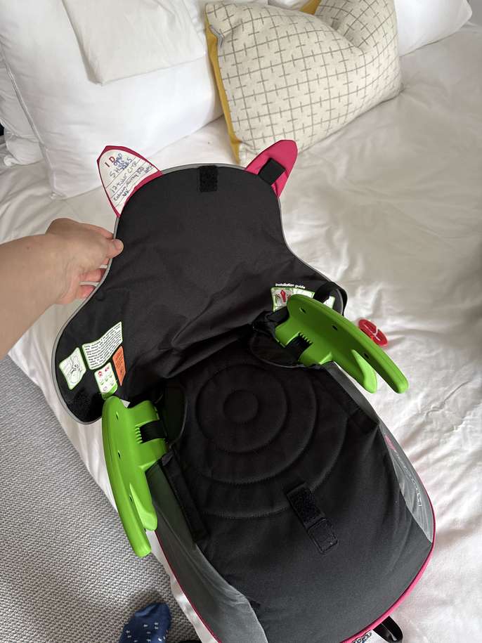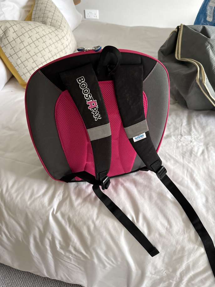 A backpack and booster seat combined, useful for travel with child when booster seat required, we used it as an airplane carry on. Used but in good condition. Collection in Cobham