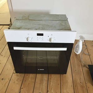 Bosch oven available, 600mm x 600mm x 600mm aprox. This one is a few years old but still works well. Will need to carry down several flights of stairs.