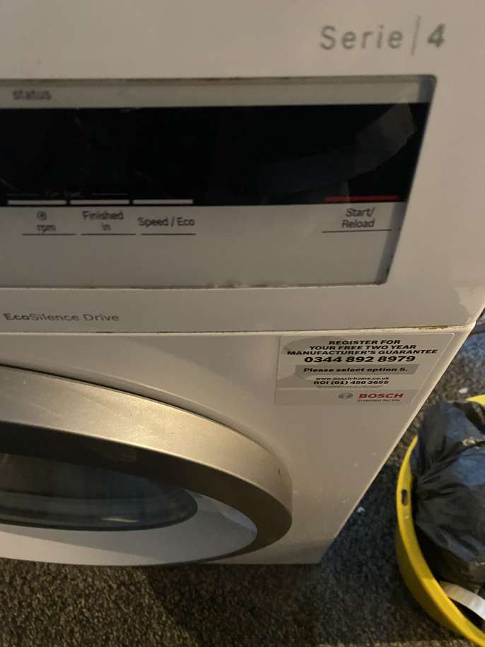 Used Bosch Washing Machine- Good condition - White 8kg Approx measurements: Depth 550 mm Height 848 mm Width 598 mm