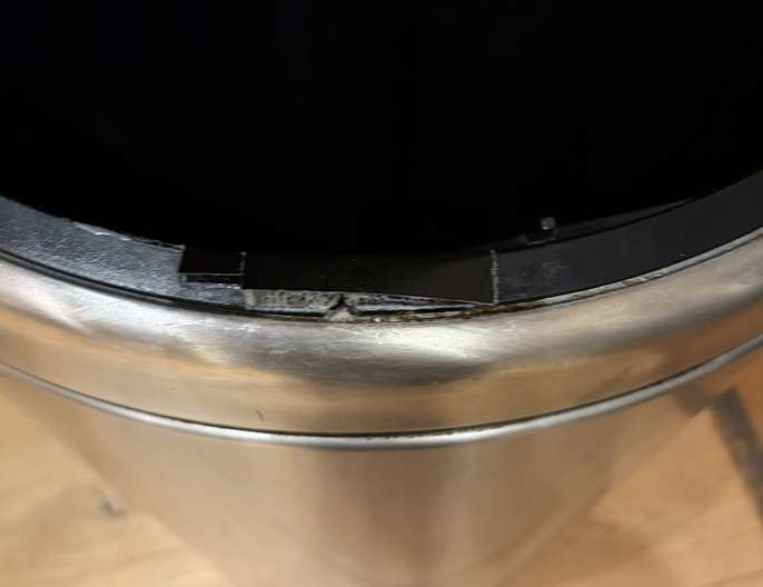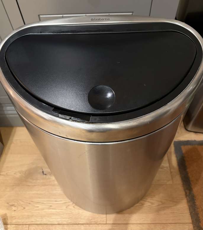 Brushed steel, overall good condition, but lid has damage to the lip, could be fixed with the right glue. Free to anyone willing to collect from TW2.