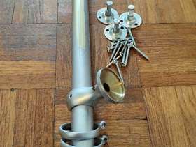 Good quality solid curtain rail with fixtures. Pole diameter 3cm, 20 brass rings, rail length 178 cm. Brass. I spray painted silver to tide us over whilst doing home decor, but as you can see the paint rubs off easily and will not be hard to remove. Collection Loudwater. Thanks.