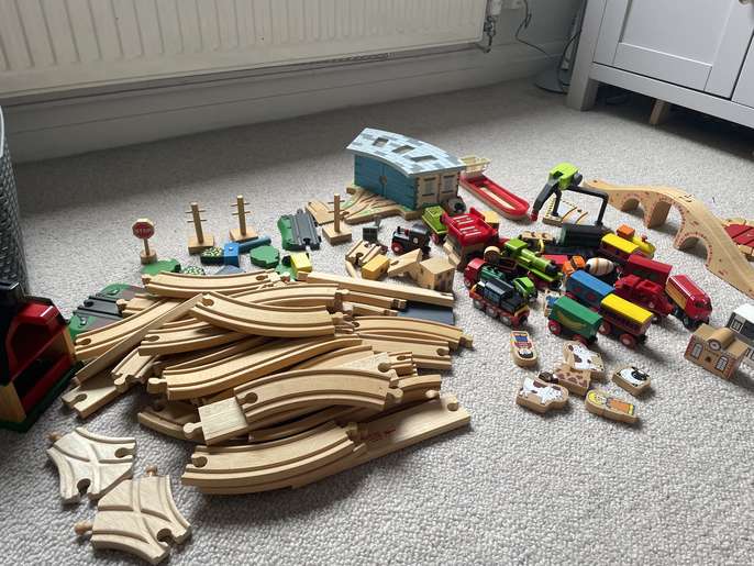 Various Brio pieces including trains and track pieces. Free to collect from Yateley.
