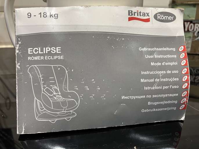 Britax Romer Eclipse car seat, suitable for child 9-18kg (1-4years approx), upright or 2 more reclined positions, instruction booklet included, used and loved, never been in any sort of accident. Probably ideal for a grandparent to use for those essential child care lifts etc!