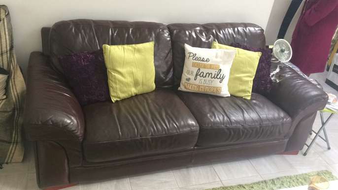 I am offering a very comfy leather sofa we bought a few years ago. Unfortunately there’s a tear on one of the sides that happened when we moved house. We can assist with transport if needed for a small charge.