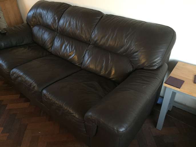 Brown Leather 3 seater sofa in good used condition. Does have a couple marks as expected for used item but no tears. Size - 200cm length 96cm depth 79cm height From a smoke & pet free home