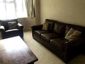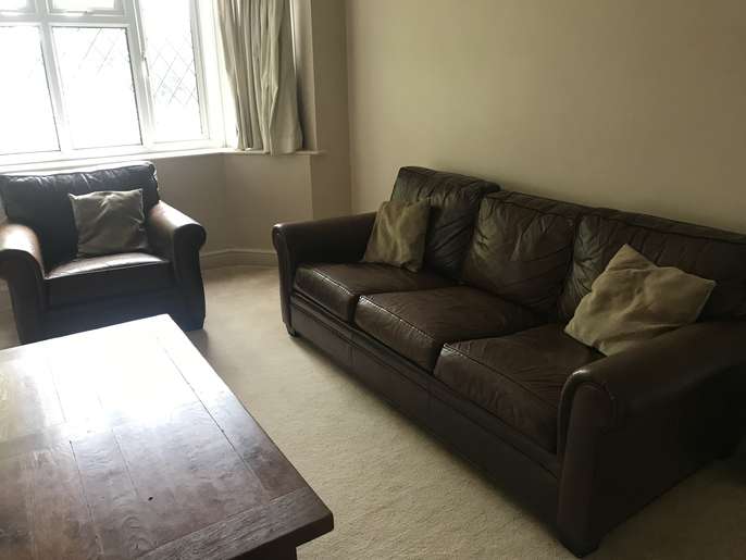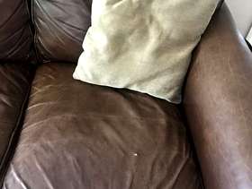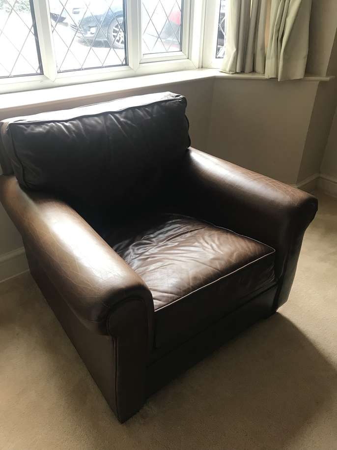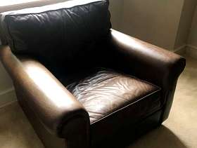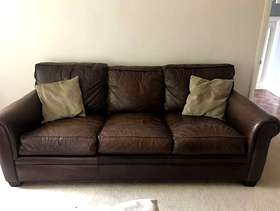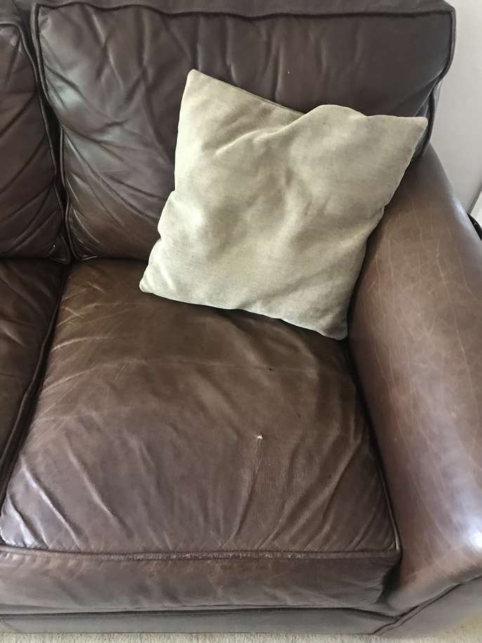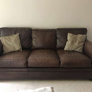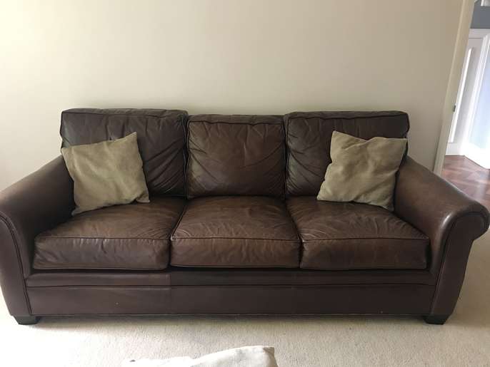 3 seat leather sofa and armchair up for grabs. There is a small hole in one of the cushions on the sofa but still looks good.