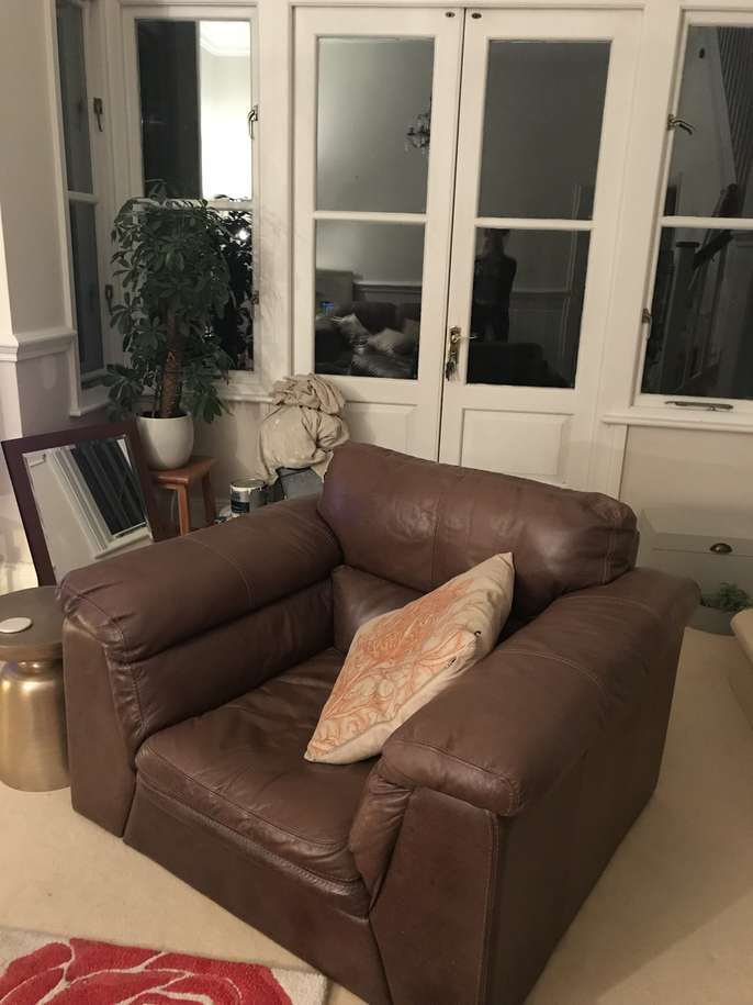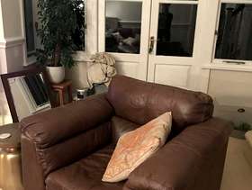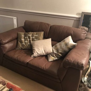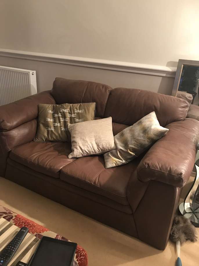 Very comfortable two seater and sofa in brown leather. In excellent condition. Must be collected.