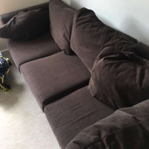 3 seater brown sofa for immediate collection. Moving to a smaller house. Can be positioned into L shaped sofa.
