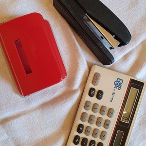 Hole punch, stapler and large calculator
