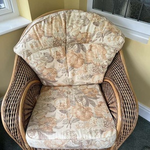 No room for floral cloth conservatory chair in small porch area. Good clean condition. Cane work is honeyed but not broken
