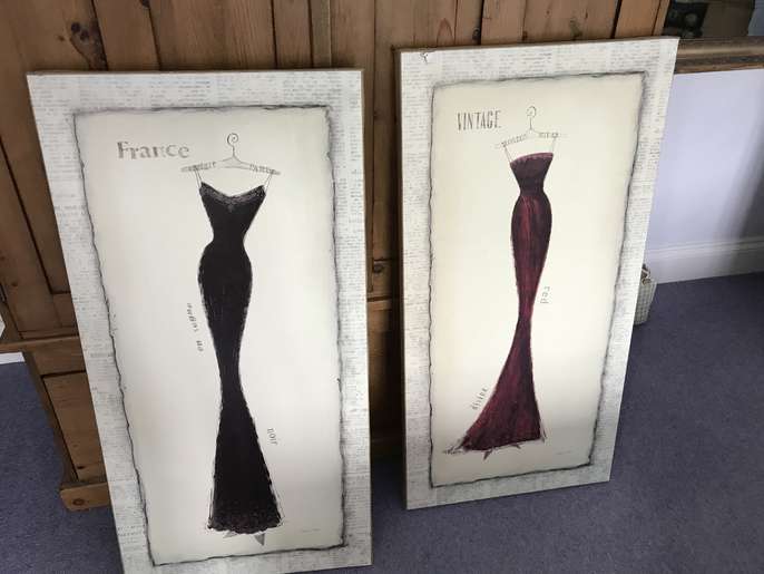 Two Emily Adams canvas wall prints. En Vogue Noir and Divine Red. One slight tear on one print (see picture).