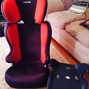 Very well used but still fully functional, booster seat with back. Also a booster seat with no back and no padding. It was handy for us as a spare when we were giving lifts to other children. We just put a tea towel over it so it's a bit more comfy.