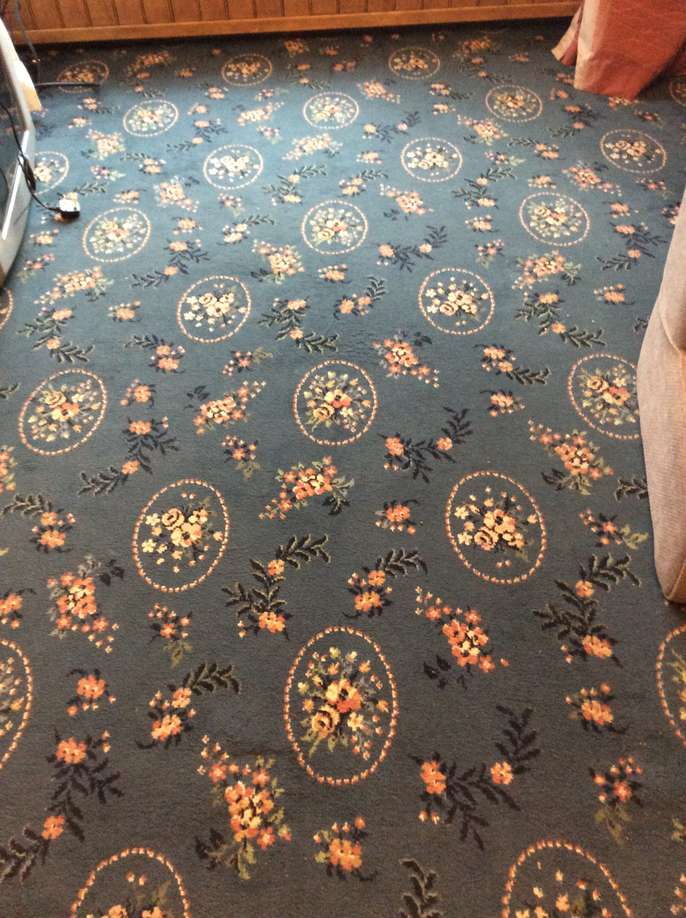 9 ft x 14 ft Petrol blue floral carpet suitable for bedroom, or loft insulation, garage, or anything that needs protection. Some underlay available also.