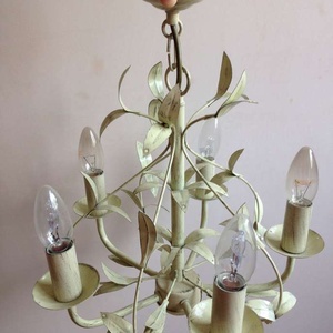 Pretty, cream-coloured, metal ceiling light. Height from ceiling rose to base: 43cm. Note: The wiring has not been tested by an electrician.