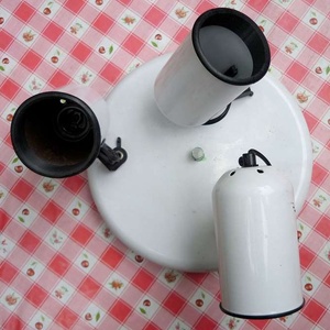 A Contemporary white with 3 black edges lamps for a ceiling fitting. Never used.