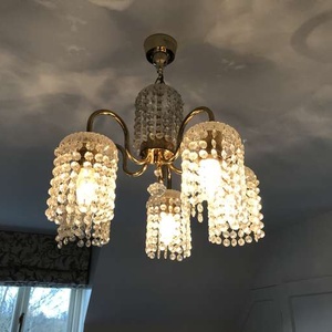 Chandelier with natty ceiling fixing that enables it to be removed and cleaned Needs dusting!
