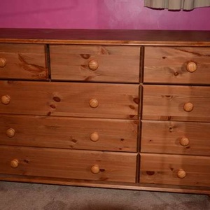 A stained pine Chest of Drawers of lightweight construction, ideal for a bedroom. Measurements are: 120cm Wide. 75cm High. 38cm deep. So that's about four foot wide. You will need an estate car, 4x4, or small van to collect. One drawer needs a slight repair (glue) otherwise all working fine. Collect from Ascot area.