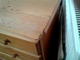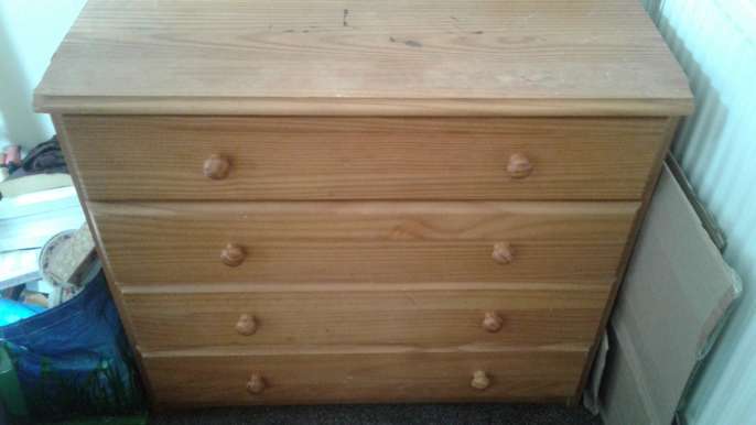 Pine chest of drawers, has damage of both edges & needs good sand down but otherwise clean & sturdy Must collectrl Weston-super-Mare