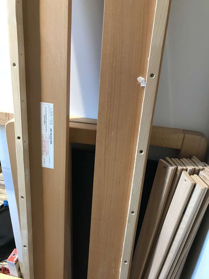 As per photos, pine, very good condition, black headboard, no mattress, already dismantled, ready to collect asap from Worcester Park, Central Road, near the train station. Desperate to shift it!