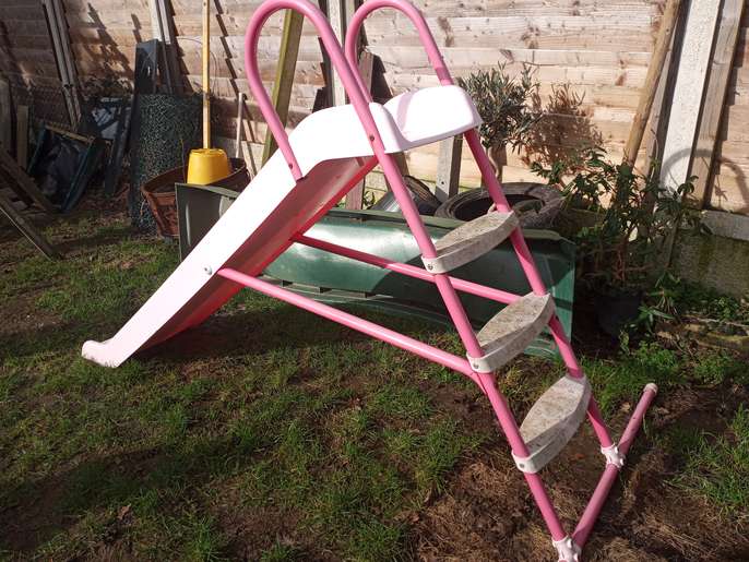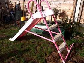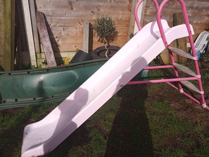 Childrens outdoor slide, a bit weathered from being out in the garden but still plenty of life left. Can be dismantled to transport