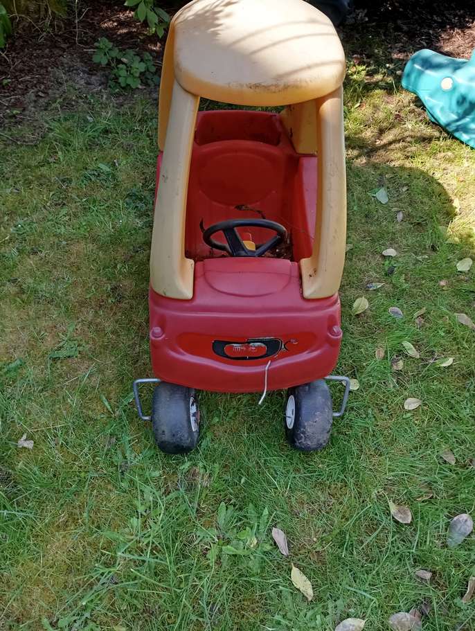 Children's toy car in good condition but needs a clean