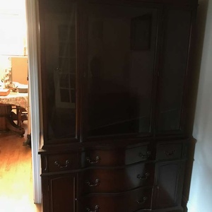 Cherry or mahogany china closet in great condition. Measures 43 " wide,71" height, 16" deep.