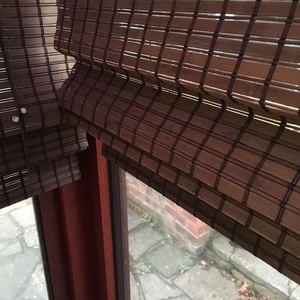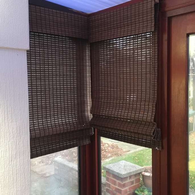 Chocolate Brown Woven Wooden Roman Blinds x 2 L 165 x W 58