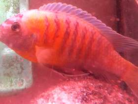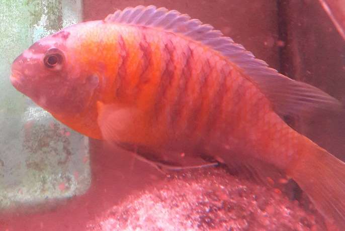 Rift valley (Lake Malawi I think) cilclid seeks a good home. Yellow & black stripes, 3 inches long approx. The last in the tank and no desire to get more.
