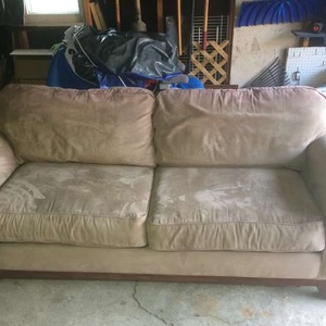 Free to a good home. Tops of the seat back cushions are sun faded but otherwise clean and comfy!