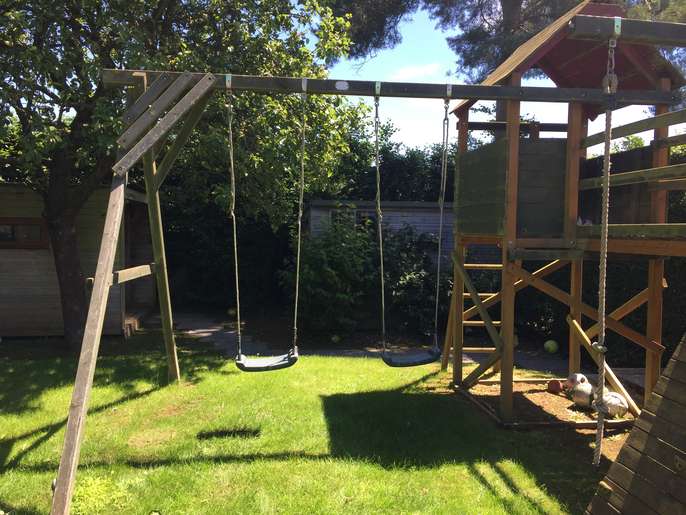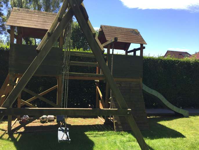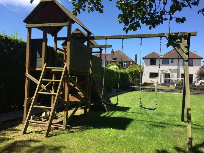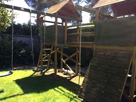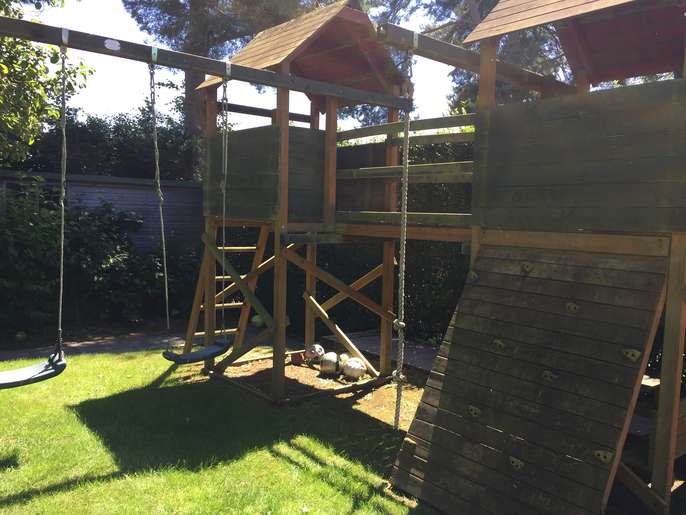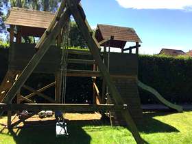 Climbing frame with swings, rope, climbing wall, slide and 2 fortress. Free to a good home but needs be collected. Little Chalfont / Amersham