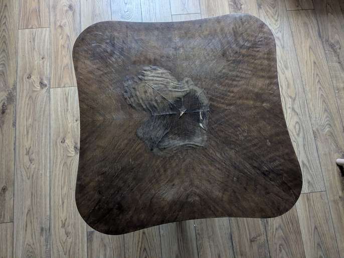 Vintage Art Deco style coffee table with shelf. Water damage on top. Very sturdy. 22 x 22 x 60cm.