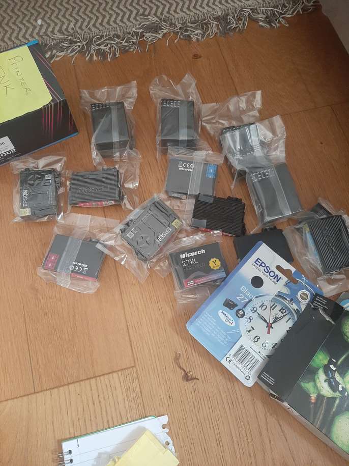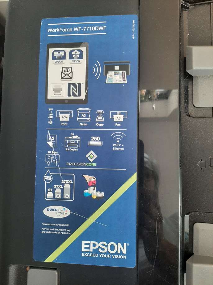 Fully working HOME colour printer and selection of ink. Make: Epson. Model: WorkfForce WF-7710DWF Is wireless but works best connected via a cable to your laptop/PC.