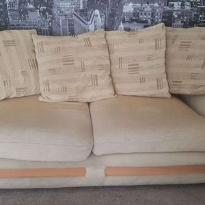 Needs cleaning on the arms , looks worse on pic , comfiest sofa ever made