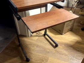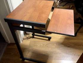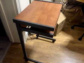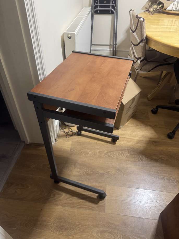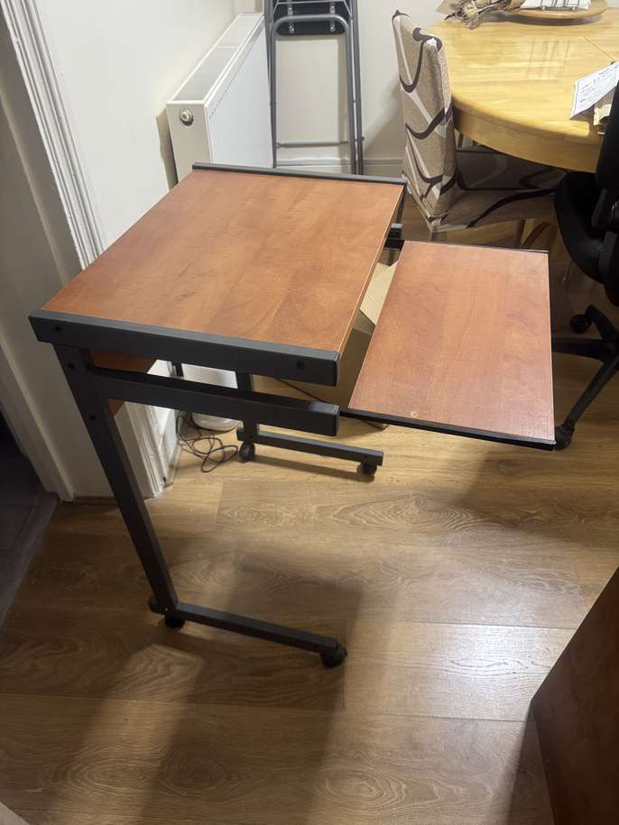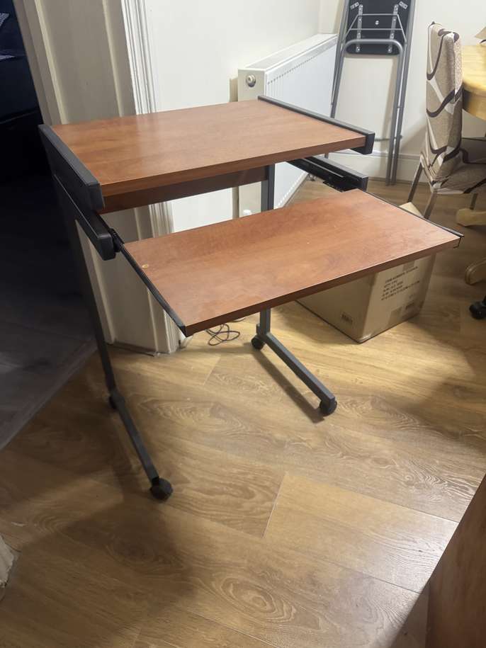 Wheeled computer desk, with pull out keyboard section. Ideal for small spaces. In very good condition. Dimensions: 21.5 inches by 16inches