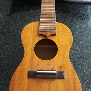 Made myself from old mahogany and cherry neck with ebony reinforcement. Has small marks as you can see due to an error in originally placing the bridge. This will have a nice loud sound. Strings available .