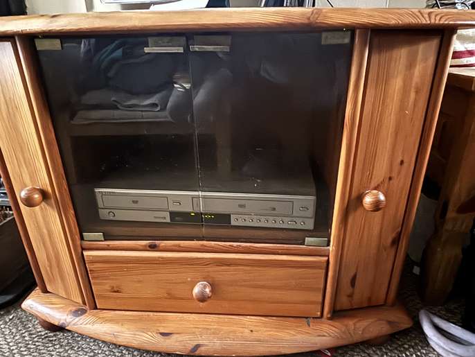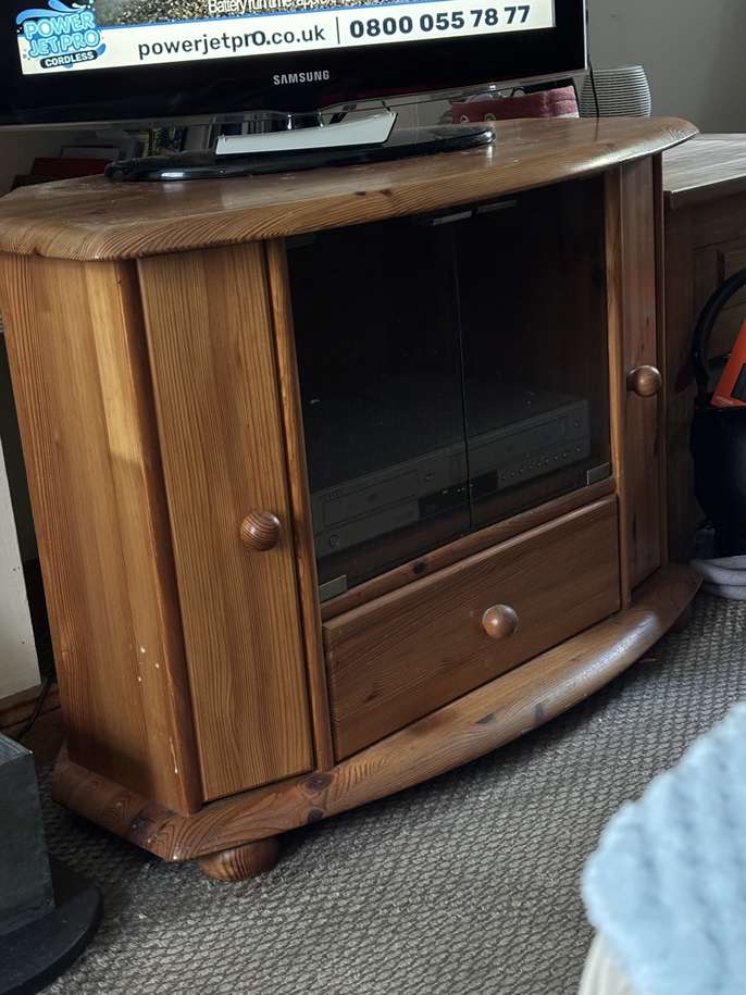 Corner tv unit This item is in Windsor GB All the details Wooden corner tv unit with 1 drawer and glass doors Category Furniture Request This Item Ask a Question Post Message
