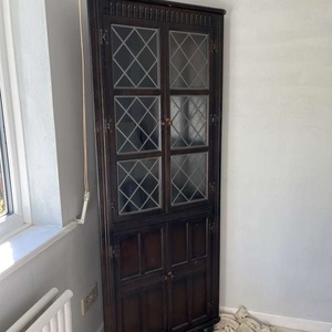 Corner Unit This item is in Hampton GB All the details Height: 66” Width: 26” Dark wood/good condition Category Furniture Request This Item Ask a Question Post Message